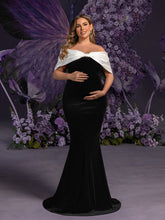 Maternity Color Block Off Shoulder Mermaid Hem Evening Dress - Black/White
