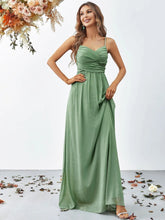 Elegant Solid Spaghetti Straps Split Thigh Bridesmaids Dress - Mauve Purple