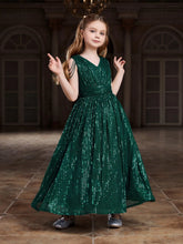 Tween Mädchenkleid mit V-Ausschnitt, ärmellosem Pailletten-Frack und Schleife