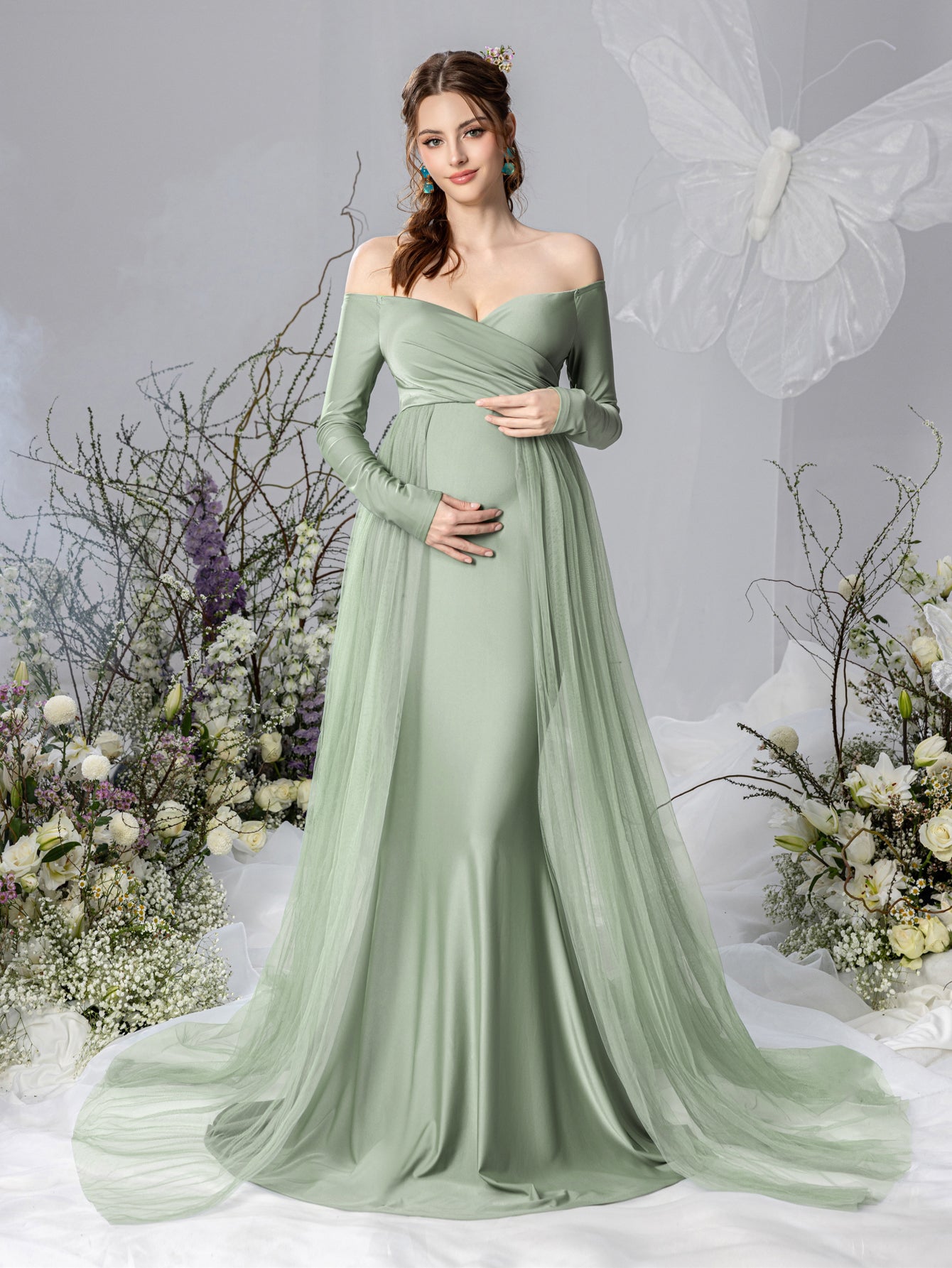Schulterfreies Umstandskleid im Meerjungfrau-Stil aus kontrastierendem Netzstoff