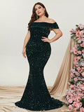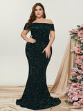 Plus schulterfreies Meerjungfrau-Abschlussballkleid