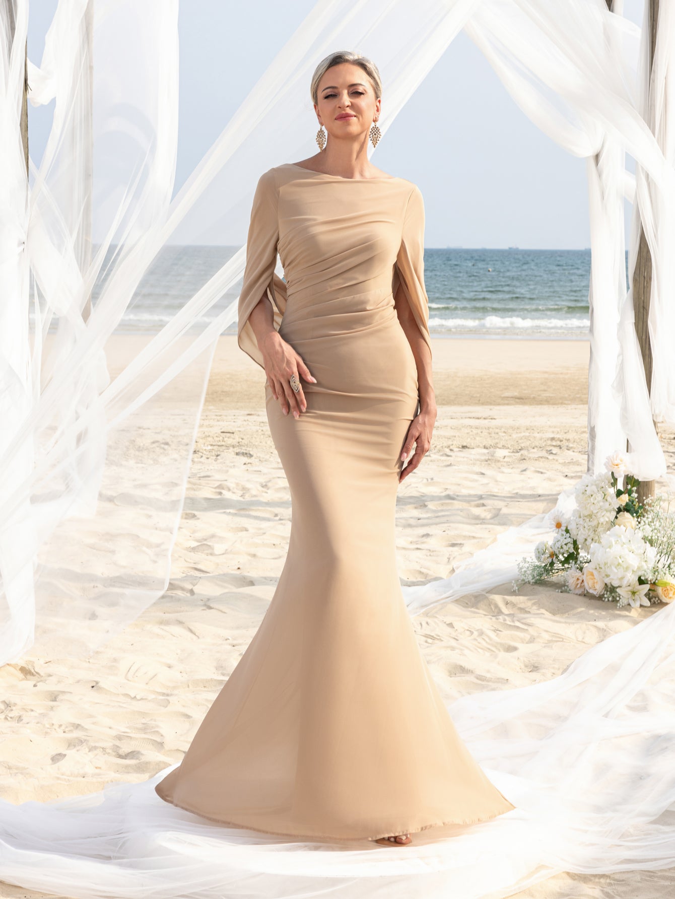 Womens' Draped Back Mermaid Hem Chiffon Formal Dress - Elonnashop