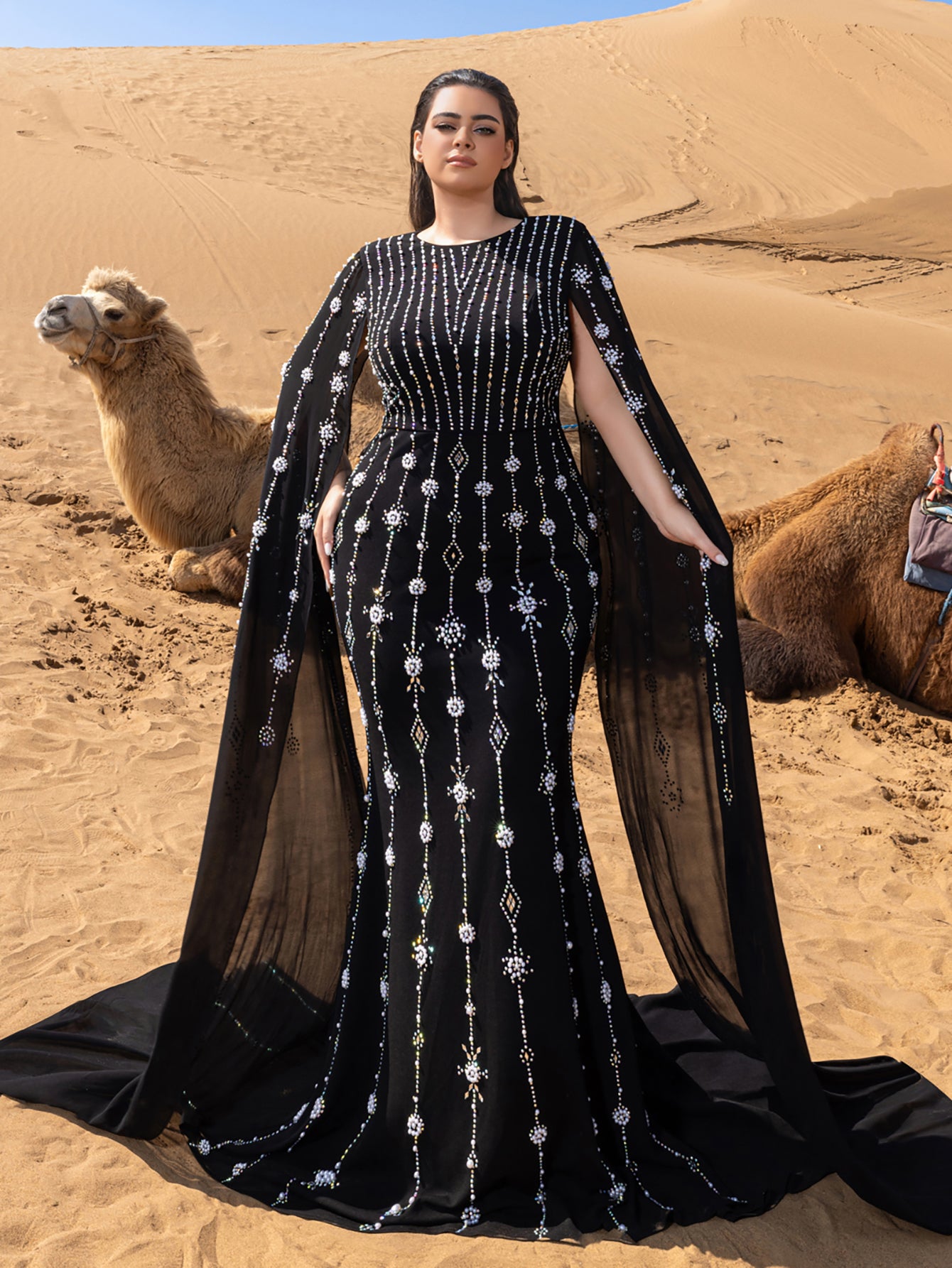 • Styling Tip: Pair with chrome-finish stilettos and onyx drop earrings for monochromatic drama, or add a faux fur stole for Old Hollywood-inspired red carpet moments.