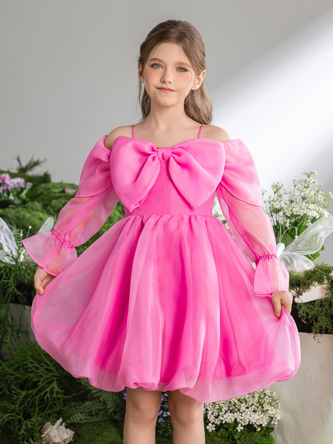 Schulterfreies Puffkleid mit Schleife vorne für Tween-Mädchen