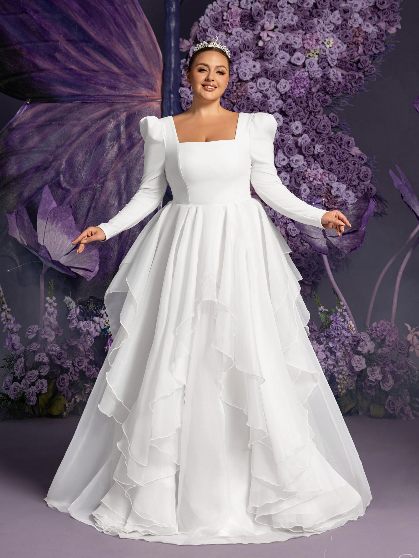 Elegant Square Collar Layered Ruffle Hem Wedding Dress