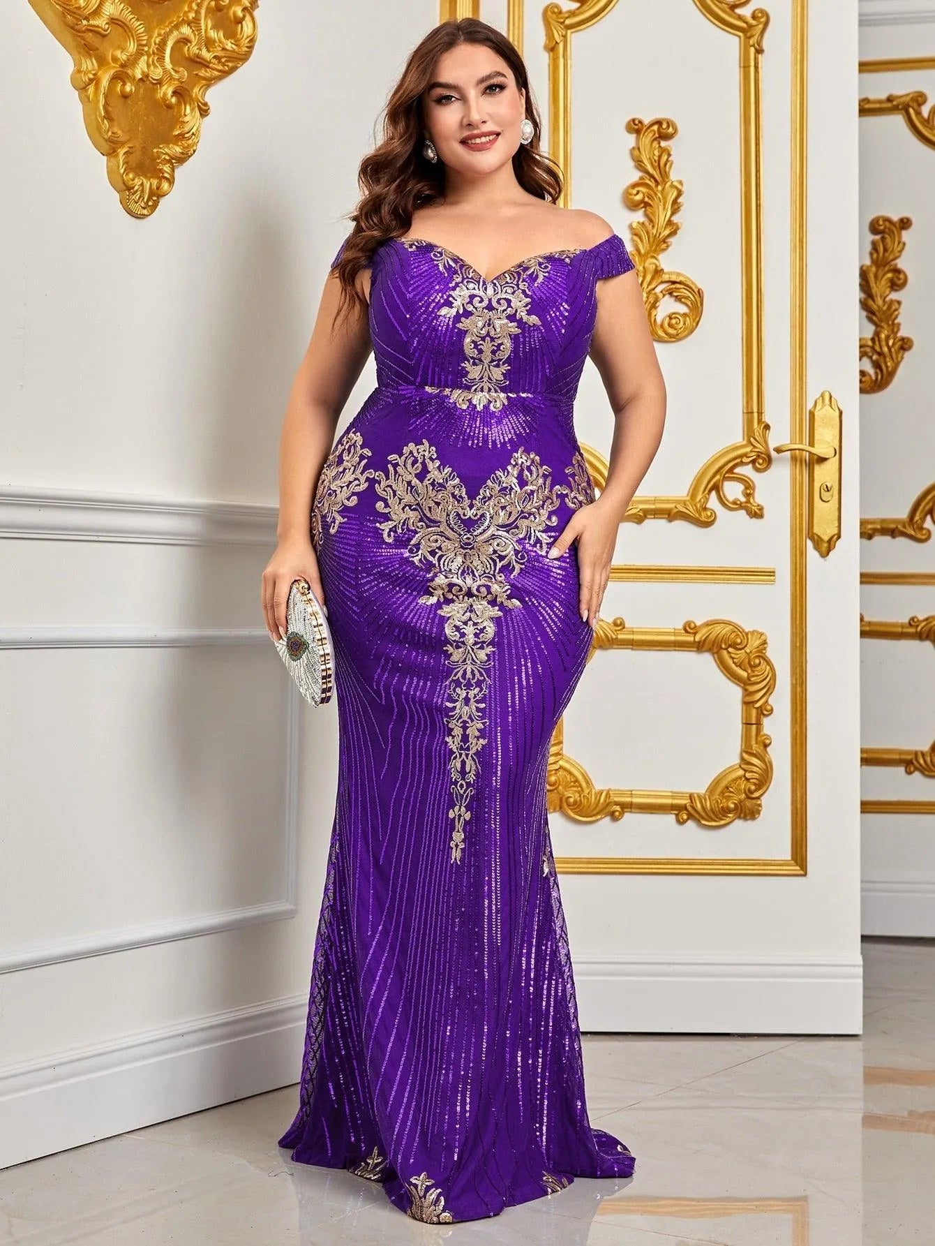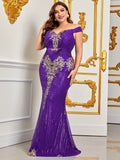 Plus Off Shoulder Mermaid Hem Sequin Formal Prom Dress - Elonnashop